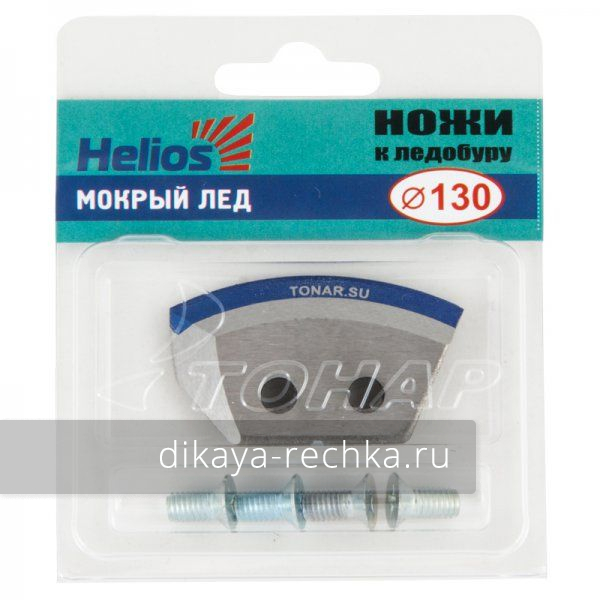Ножи для ледобура HELIOS HS-130 (полукруглые) мокрый лед - комплект запасных ножей, разработанных специально для мокрого льда, которые подходят ко всем ледобурам левого вращения серий ТОРНАДО и ТОНАР диаметром 130 мм. Полукруглая форма режущей кромки существенно снижает усилие бурения, что особенно актуально, когда толщина льда превышает 40 см. Благодаря доводке кромки лезвий на высокотехнологичном итальянском оборудовании и обработке их специальным составом острота ножей сохраняется дольше. Поставляются в комплекте с крепёжными винтами.