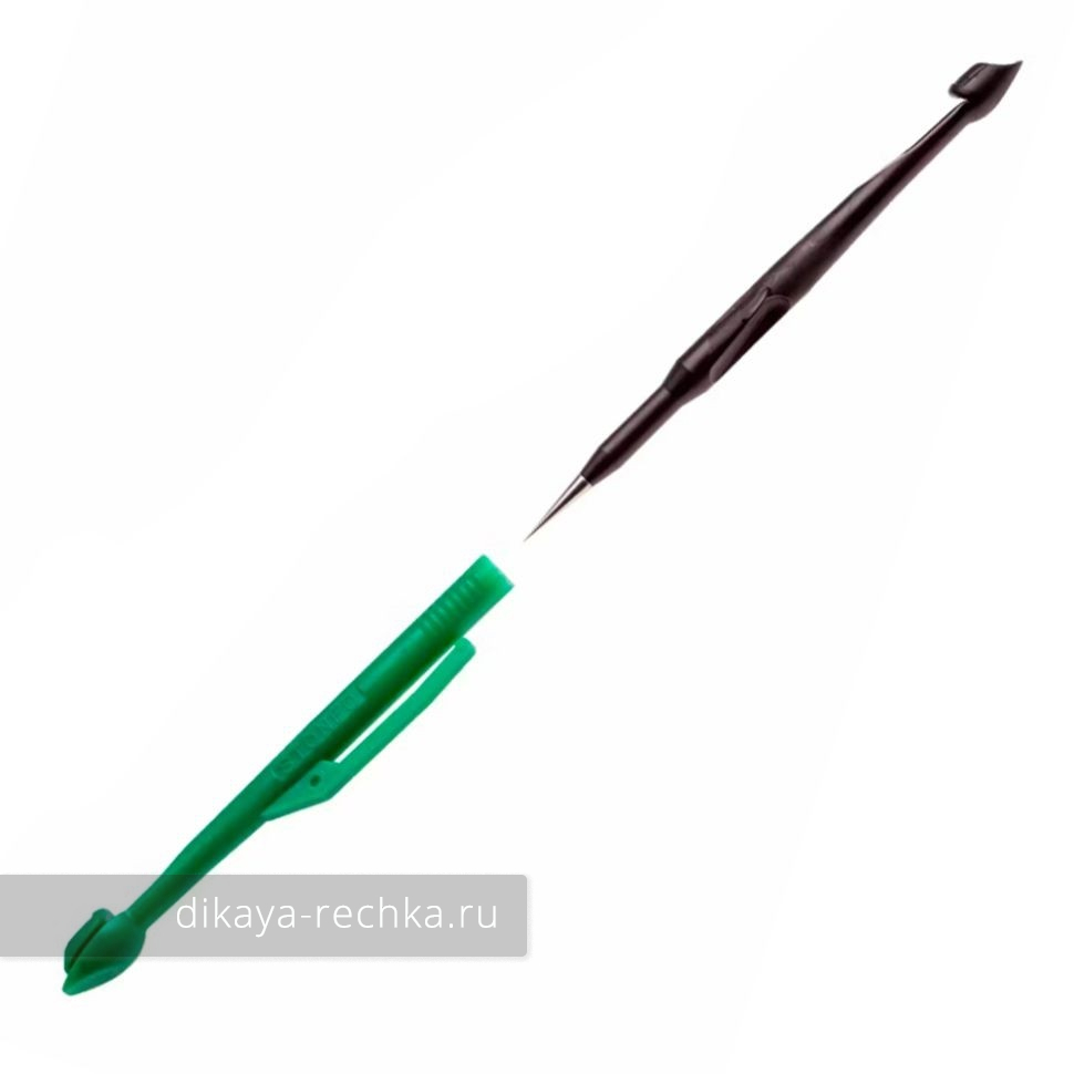 Экстрактор необходим для быстрого снятия рыбы с крючка, в первую очередь глубоко проглоченного. Обязательно должен входить в экипировку каждого любителя ловли белой рыбы, совершенно незаменим при спортивной рыбалке, но необходим и обычному рыболову - сбережёт время и нервы при извлечении глубоко проглоченного крючка, позволит меньше травмировать рыбу, и даже если крючок проглочен не очень глубоко, позволит извлечь его без риска сломать цевьё, что очень легко сделать при извлечении крючка из закалённой проволоки пальцами. Это пластиковый инструмент, похожий на авторучку, с одной стороны которого есть специальный крючок, немного похожий на вязальный. Леска продевается в прорезь, экстрактор сдвигается по ней до крючка, крючок фиксируется в специальной ямке. При нажатии на экстрактор крючок легко извлекается в направлении, противоположном тому, в котором он воткнулся, и затем вся конструкция аккуратно вытаскивается изо рта рыбы. Экстрактор легко разбирается на две половины, внутри на одной из них есть специальная коническая игла для распутывания узлов и бород на леске.