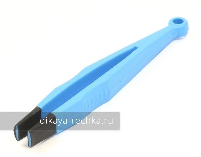 В современной ловле так называемой мирной рыбы, и донной, и поплавочной, зачастую используются крючки просто микроскопических размеров, которые очень сложно удержать в пальцах для насаживания приманки. Да и на зимней рыбалке надевание мотыля на крючок замёрзшими пальцами способно превратиться в серьёзную проблему. Специальный пинцет от итальянской компании Stonfo может значительно облегчить жизнь рыболова. Он изготовлен из высококачественного прочного пластика, его широкие губки обрезинены и надёжно удержат любой крючок, пока вы надеваете на него наживку другой рукой. В основании пинцета предусмотрено крепление для ретривера или страховочного шнура, чтобы вы не потеряли пинцет на рыбалке.