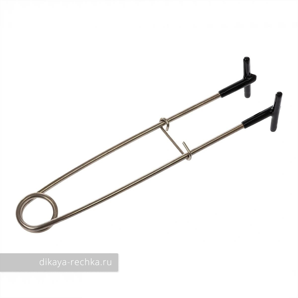 Металлический зевник с обрезиненными наконечниками, не выскальзывает из пасти щуки. В сложенном положении фиксируется скобой.