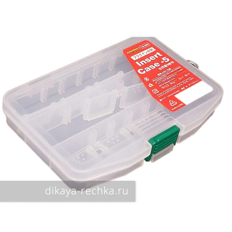 Прозрачная коробка для рыболовных принадлежностей из прочного пластика. Три продольных отсека имеют пазы для съемных перегородок, и вы можете адаптировать размер ячеек под ваши приманки.