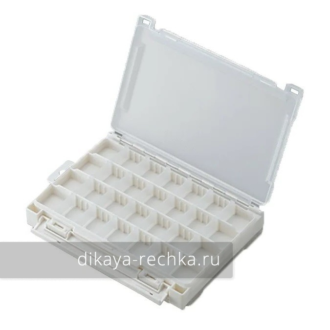 3010W - двусторонняя коробка из белого пластика с прозрачной крышкой для хранения мелких рыболовных приманок, прочная, надёжно зарывающаяся. По четыре продольных отсека с каждой стороны могут разделяться по усмотрению рыболова. Перегородок имеется большой запас, поэтому вы можете использовать коробку для самых мелких элементов оснастки. Коробка прекрасно подойдет для микроджига - поверхность крышек специально сделана ребристой, чтобы мелкий силикон не прилипал к ней.
