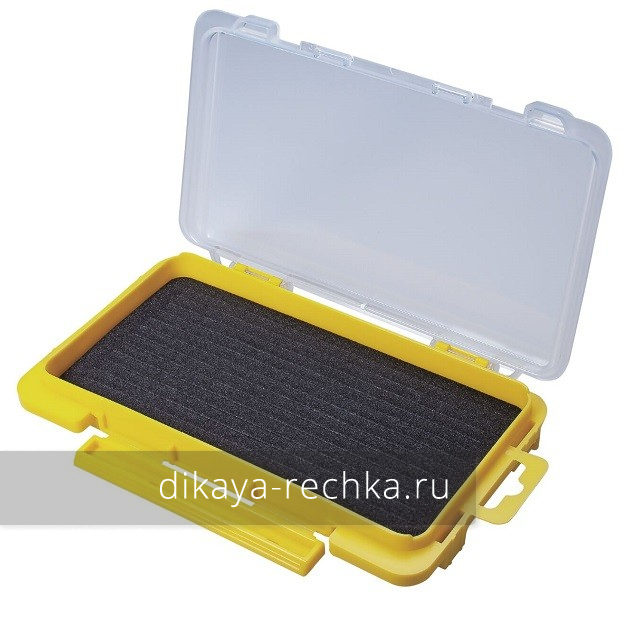 Коробка с прозрачной крышкой для хранения блесен и джиг-головок, прочная, надёжно зарывающаяся. Имеет внутри подложку из вспененного материала, поэтому вы можете легко разместить внутри ваши приманки так, как вам удобно, вставляя крючки в прорези в подложке.
