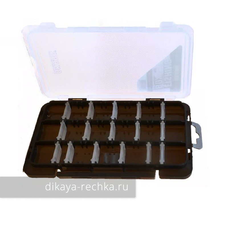 Небольшая карманная коробочка очень популярной у микроджигеров формы. Ребристая внутренняя поверхность крышки не дает приманкам прилипать. Съемные разделители позволяют удобно организовать пространство, и приманки всегда в легком доступе. На обратной стороне есть крепления, позволяющие соединить две коробки между собой.