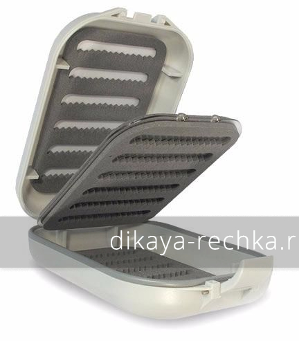 Коробочка для мух со средней вставкой. Соединение половинок осевое, что продлевает срок службы. Уплотнительная прокладка по периметру крышки предохраняет содержимое от воды. Коробка такого типа позволяет хранить большое количество мух, но имеет небольшое внутреннее пространство, поэтому предназначена для мелких приманок. Имеет четыре листа с тремя вставками для хранения сухих мушек, и одной для нимф и мокрых мушек.