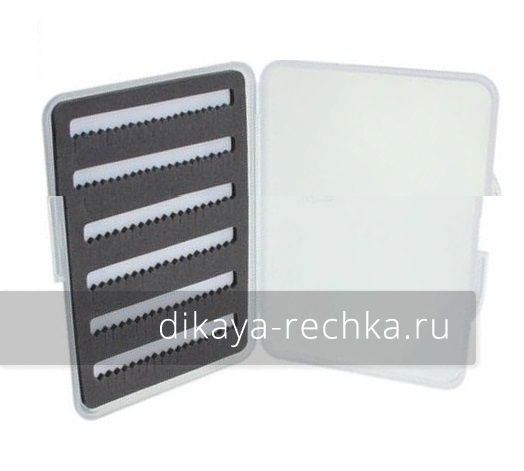 Коробка для мушек, закрывается надёжной застёжкой. Через полупрозрачную крышку видно, какие мушки хранятся в коробке, нет необходимости её открывать лишний раз. Имеет один лист для хранения мелких грузовых мушек и нимф. Ее тонкий дизайн позволит поместить несколько коробочек в один карман жилета.