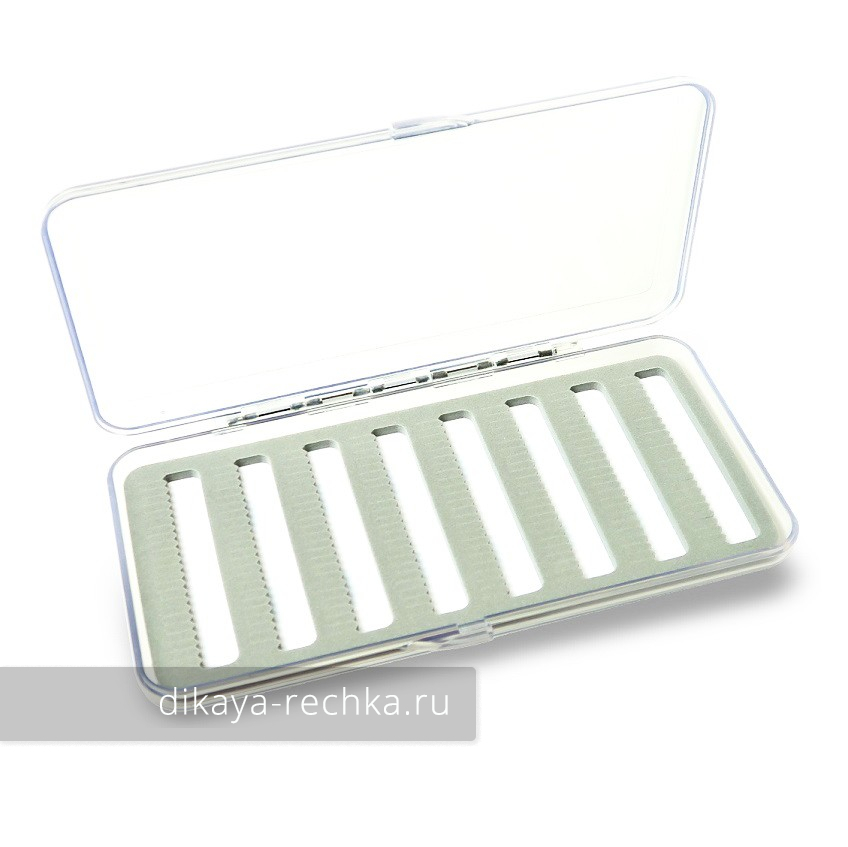 FLY-FISHING Прозрачная коробочка Exclusive Hard Plastic Slim Fly Box 180х90х18 мм SLIT FOAM - коробка для мушек, закрывающаяся надёжными застёжками, снабжённая уплотнительными прокладками, защищающими содержимое от воды. Через прозрачную крышку отлично видно, какие мушки хранятся в коробке, нет необходимости её открывать лишний раз. Имеет один лист для хранения различные приманки, как объёмные сухие мушки, так и некрупные стримеры .