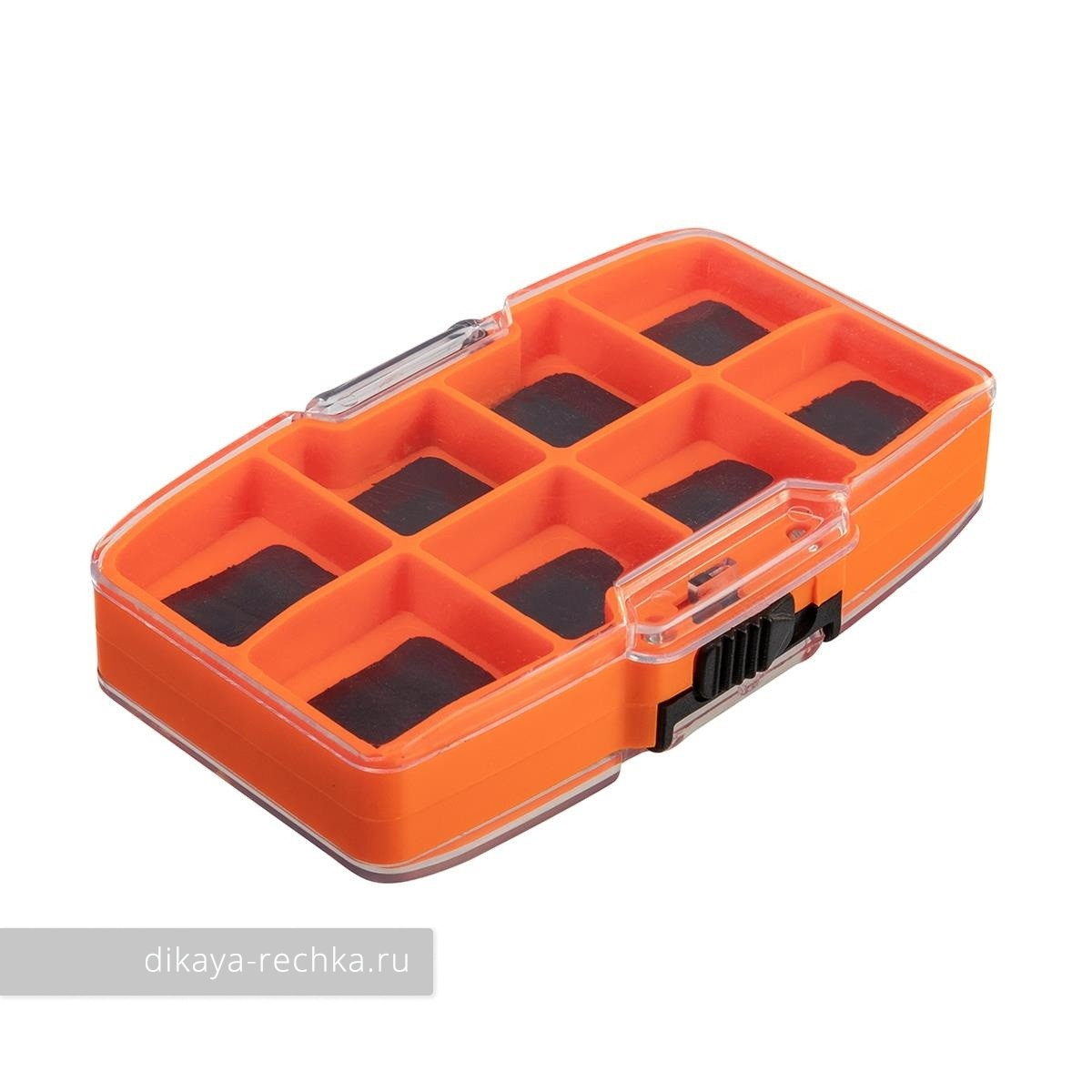 Компактная карманная двухсторонняя коробочка под мелочи и крючки, в которой одна сторона разделена на отсеки с магнитной подложкой, не дающей содержимому рассыпаться.