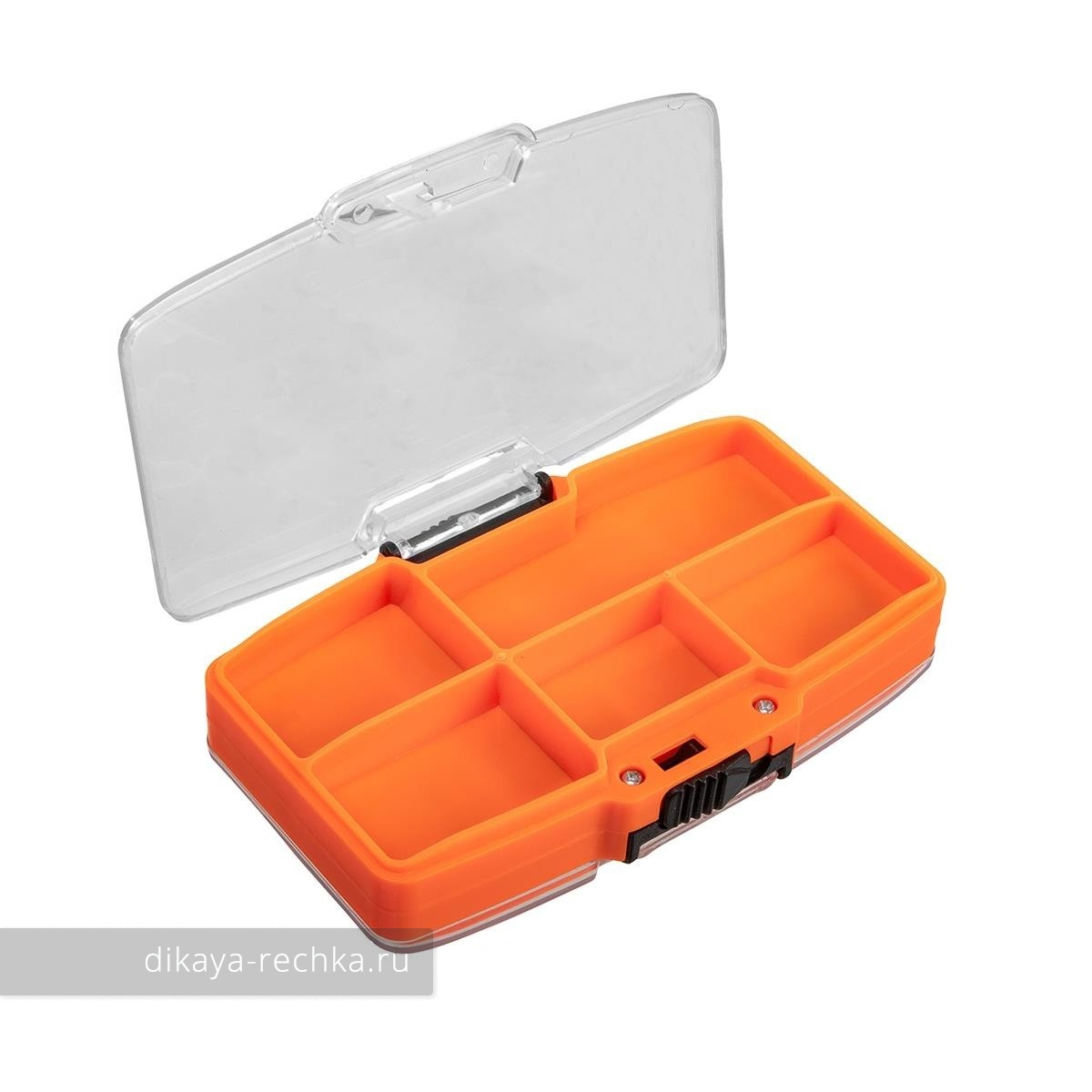 Прозрычные крышки на металлическом шарнире закрываются пружинной застежкой. Яркий цвет коробки не даст вам ее потерять, если вы выроните ее где-то на берегу.
