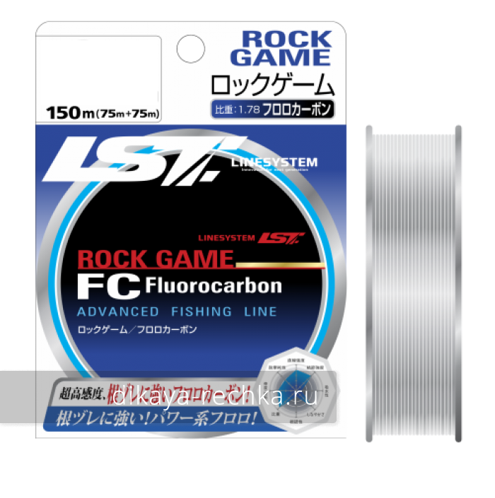 Rock Game - серия тонкого флюорокарбона в размотке 150 метров, ориентированного на прибрежную ловлю мелкими приманками. В таких условиях плетеные шнуры не всегда выдерживают частый контакт с острыми камнями и ракушечником, с чем гораздо лучше справляется более жесткий флюорокарбон. Кроме того, он менее заметен в воде, быстрее тонет, за счет чего легкие приманки быстрее погружаются; достаточно хорошо летит, и в то же время