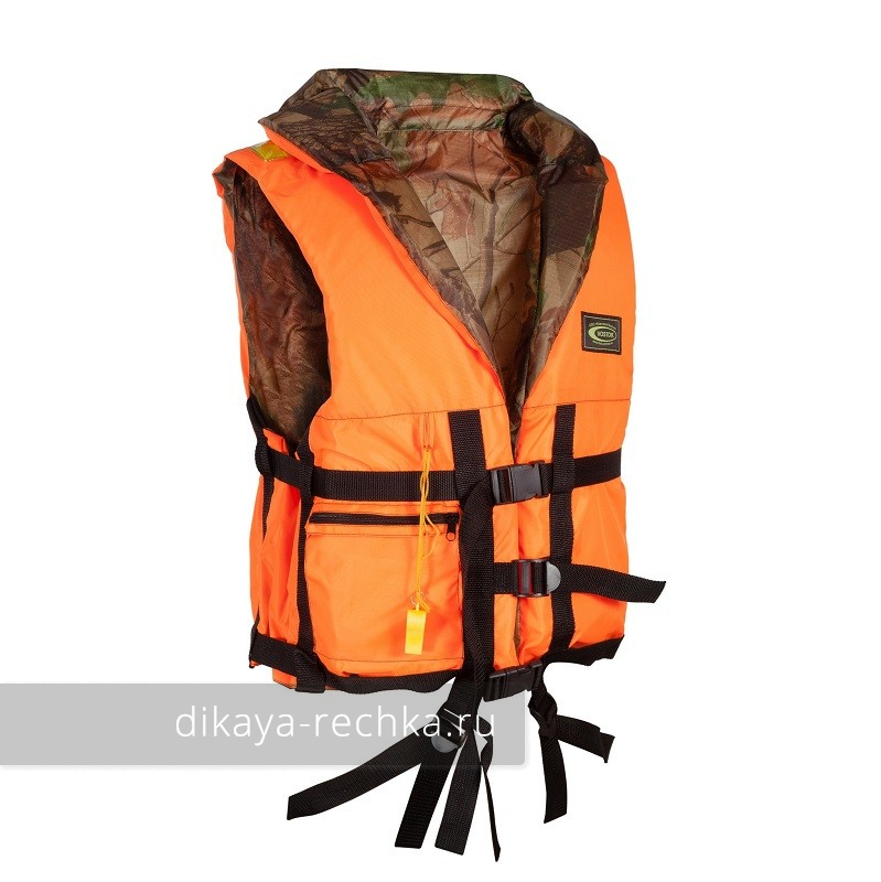 Сертифицированный двухсторонний спасательный жилет, удовлетворяющий требованиям ГИМС. Имеет наружный и внутренний карманы, страховочную стропу, светоотражающие элементы и свисток.