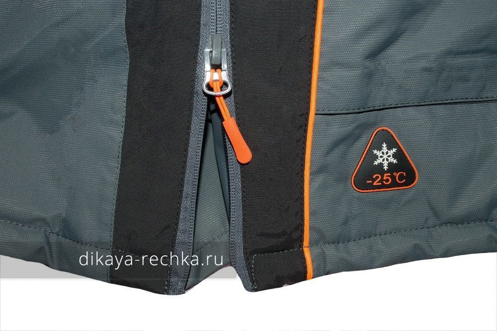 И куртка, и штаны застёгиваются на двойную пластиковую молнию крупного размера, снабжённую ветрозащитными клапанами на кнопаках. Полукомбинезон на регулируемых лямках имеет завышенную поясничную часть, на куртке от поддувания предусмотрена утягивающаяся кулиска. Высокий воротник и отстегивающийся регулируемый по объему капюшон дают возможность закрыться от ветра и холода по максимуму.
