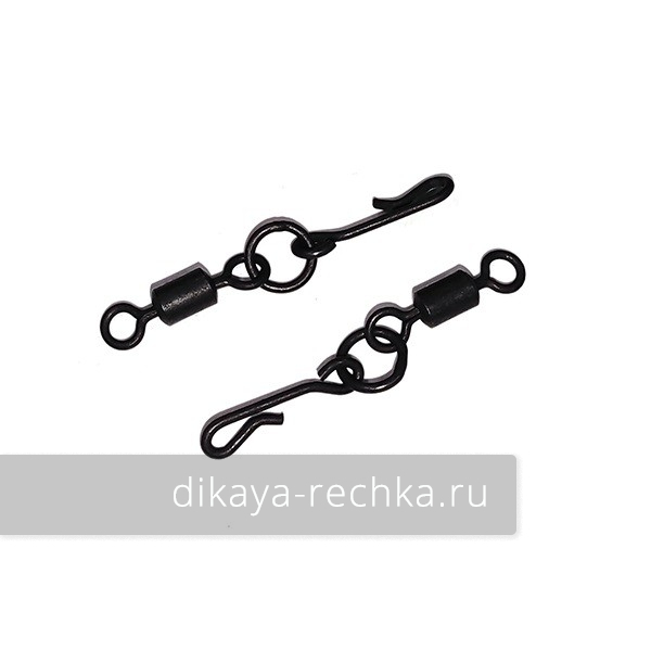 HITFISH Carp Series A-12 Вертлюг с кольцом и застежкой Heli Swivel With Quick Snap #4 MBL (4 шт/уп)