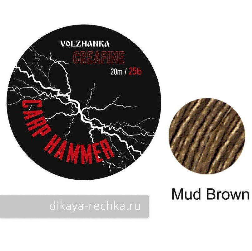 Супертонкий и супертонущий поводочный материал без оплетки Волжанка "CreaFine" 25LB/ 20м Mud Brown