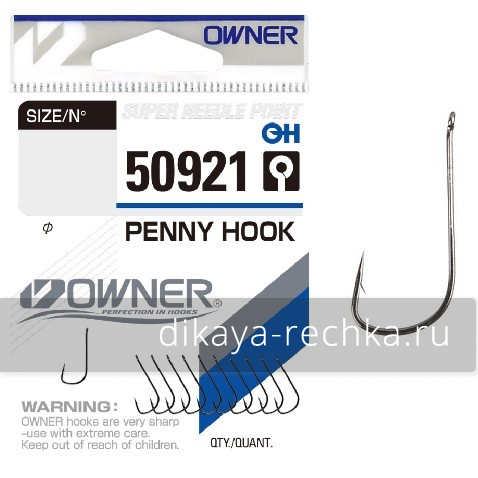 OWNER 50921, Penny hook - одна из самых популярных моделей крючков Owner как для поплавочных, так и для донных оснасток. Благодаря широкому поддеву с загибом особой формы они просто невероятно зацеписты даже по сравнению с другими моделями фирмы, а тончайшая проволока, из которой они изготовлены, не позволит вытечь такой деликатной наживке, как мотыль. Как и все модели крючков Owner, Penny hook имеет качественное покрытие, защищающее от коррозии.
