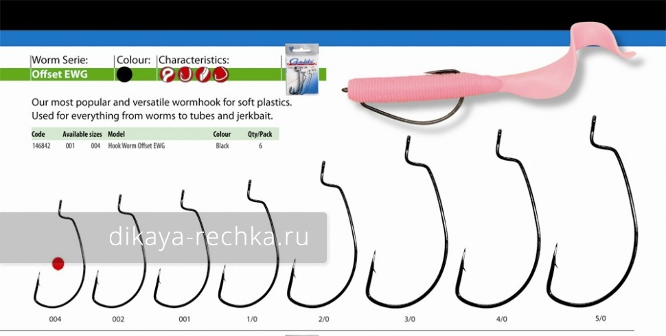 Офсетный крючок Gamakatsu Worm Offset EWG NS 4, 6шт