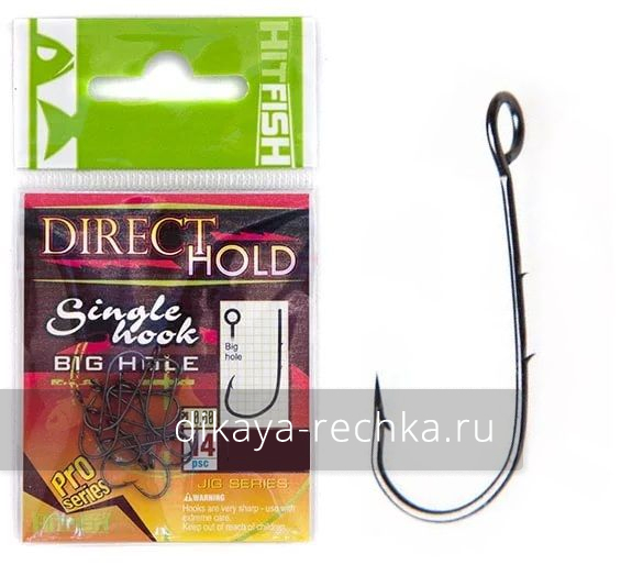 Одинарный крючок с засечками HITFISH DIRECT HOLD SINGLE HOOK (с большим ухом) #08 (14 шт/пач)