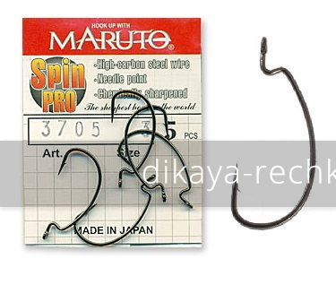 Высококачественный офсетный крючок от японской компании Maruto с широким загибом типа Wide Gap. Его удлинённое острое жало при подсечке глубоко впивается в пасть хищника, не давая ему сойти при вываживании, этому способствует широкий загиб, действующий, как рычаг. Крючок изготовлен из качественной стальной проволоки, прочной, но не хрупкой. Его весьма сложно сломать или разогнуть. Благодаря специальному покрытию мало подвержен коррозии. Такие крючки можно применять для приманок любого типа, даже тех, которые изготовлены из жёсткого материала. Исключение составляют только виброхвосты с узким высоким телом, их лучше оснащать джиг-головками.