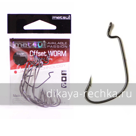 Офсетный крючок корейского производства от бренда Metsui, сочетающий в себе высокое качество при очень приятной цене. Они изготовлены из прочной стальной проволоки, имеют очень широкий поддев и правильный изгиб перед колечком, препятствующий сползанию приманки. Благодаря электрохимической заточке жало у крючка очень острое и глубоко вонзается в пасть рыбы при подсечке. Покрытие "black nickel" защищает крючок от коррозии, продляя срок его службы. Такие крючки можно применять для приманок любого типа, даже тех, которые изготовлены из жёсткого материала. Исключение составляют только виброхвосты с узким высоким телом, их лучше оснащать джиг-головками.