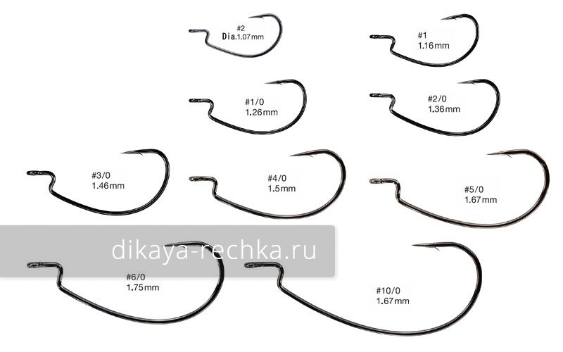 Офсетные крючки, изготовленные из высококачественной высокоуглеродистой проволоки, прокованные для упрочнения с боков. Такой крючок не по силам сломать или разогнуть даже самому крупному хищнику. Широкий загиб обеспечивает хороший рычаг при подсечке, глубоко вонзая длинное острое жало, способное пробить даже твёрдую щучью пасть, а бородка не даёт сойти при вываживании. Каждый крючок оснащён резиновой манжетой, которая снимается с цевья перед насаживанием силиконовой приманки и надевается обратно после первого прокола, фиксируя силикон, не давая ему сползти.