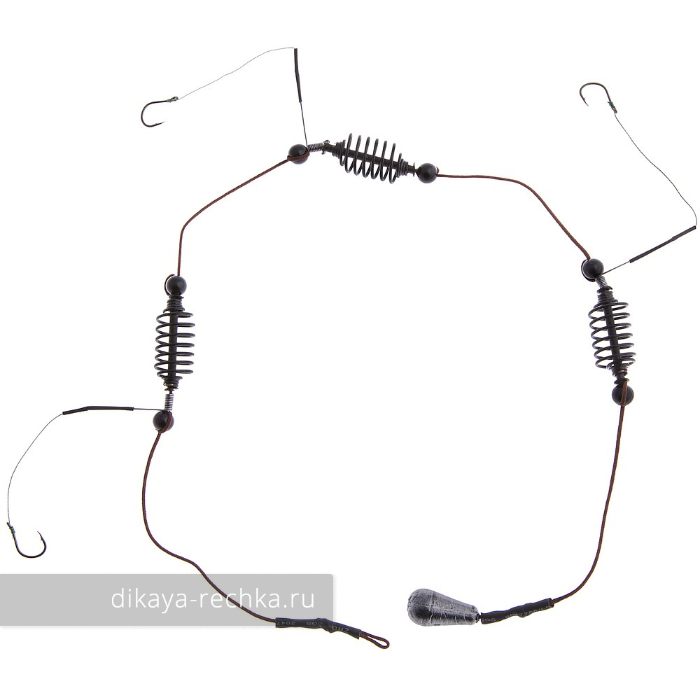 Готовая уловистая оснастка для донной ловли карася. Связана из плетёной лески, состоит из трёх миниатюрных кормушек пружинного типа, трёх коротких поводков с крупными крючками, уже оснащёнными пенопластовыми шариками, застёжки для грузила, самого грузила и вертлюга для привязывания к основной леске. Применяют её следующим образом: в пружины набивается ароматная прикормка, заводского производства или изготовленная самостоятельно, например, макуха или мастырка. После заброса снасть лежит на дне, шарики пенопласта на крючках приподнимают их вверх. Карась, привлечённый прикормкой, подходит к кормушке и начинает всасывать корм. Как правило, он не может удержаться от того, чтобы не попробовать пенопластовый шарик, и попадает на крючок. Иногда бывают ситуации, когда карася не интересует пенопласт. В этих случаях можно применять обычные насадки: червя, опарыша, тесто, горох и тому подобные.