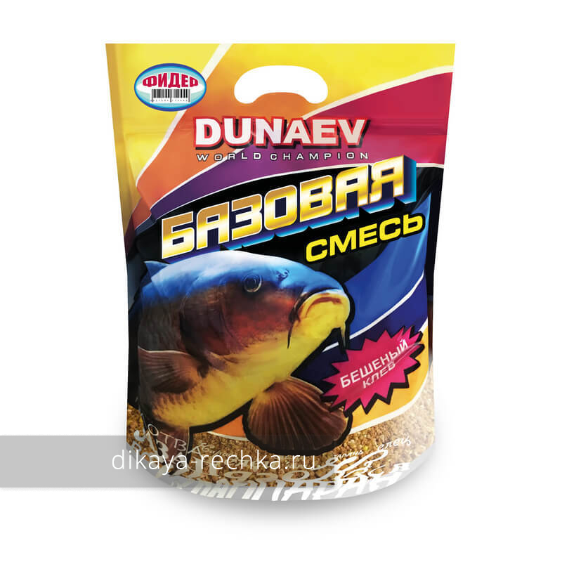 DUNAEV Базовая смесь Фидер - светлая сухая базовая прикормка из высококачественных компонентов, практически не содержащая ароматики, благодаря чему вы можете придать ей именно тот запах, который вам нужен, она будет пахнуть вашей аромой, а не тем, что заложил в неё производитель. Также она поможет снизить интенсивность запаха сильно ароматизированных спортивных прикормок. Добавляя в неё различную ароматику, высокоактивные прикормки и различную крупную фракцию, вы можете создать именно ту прикормочную смесь, которая отвечает всем условиям ловли в вашем водоёме. Эта смесь ориентирована в первую очередь на фидерную ловлю, поэтому имеет несколько повышенную клейкость, а также насыщена крупной растительной фракцией, необходимой для удержания рыбы на кормовом столе.