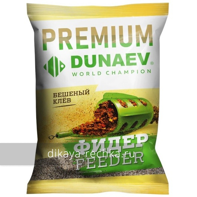"DUNAEV-PREMIUM" Фидер - высокоэффективная прикормка для фидерной ловли в стоячей воде. Сочетание высокоактивных частиц и "вкусного" ароматического комплекса делают её привлекательной для всех видов карповых. Состоит из бисквитной крошки, специально выпеченных панировочных сухарей, арахиса, конопли, льна, кокоса, кукурузы, сахарного песка, натуральных и искусственных пищевых ароматизаторов и красителей.