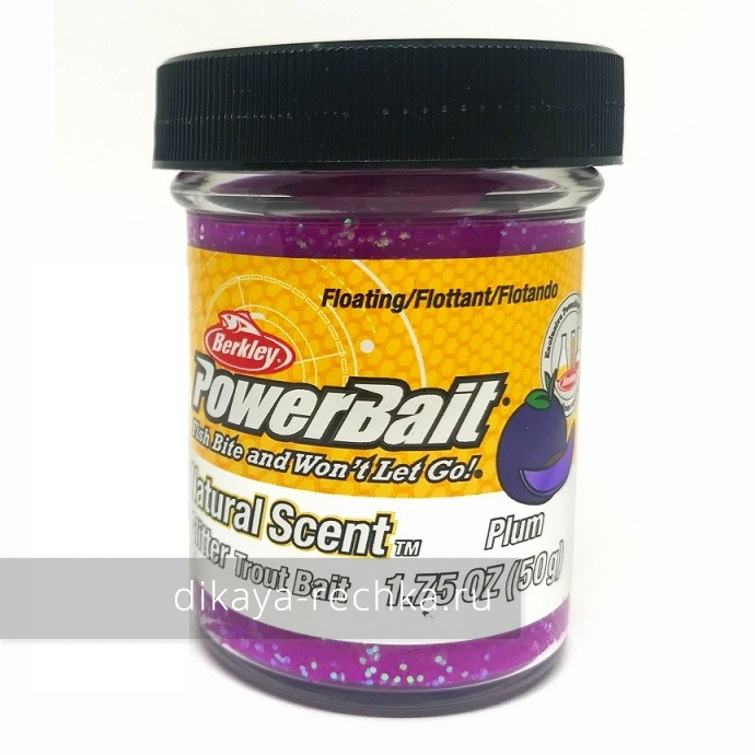 Специализированная насадочная паста для ловли форели от американской фирмы Berkley. Она очень легко лепится в нужную форму, хорошо держится на крючке. В состав включен очень стойкий натуральный ароматизатор с запахом сливы, а также специальные добавки, усиливающие вкус и запах, привлекающие рыбу с большого расстояния. Для ещё большей аттрактивности в пасте есть блёстки, неотразимо действующие на форель. Приманка имеет положительную плавучесть, что позволяет использовать самые разные оснастки без захлёста поводка за основную леску. Эта паста изготовлена из биоразлагаемых компонентов, поэтому её использование безопасно для окружающей среды.