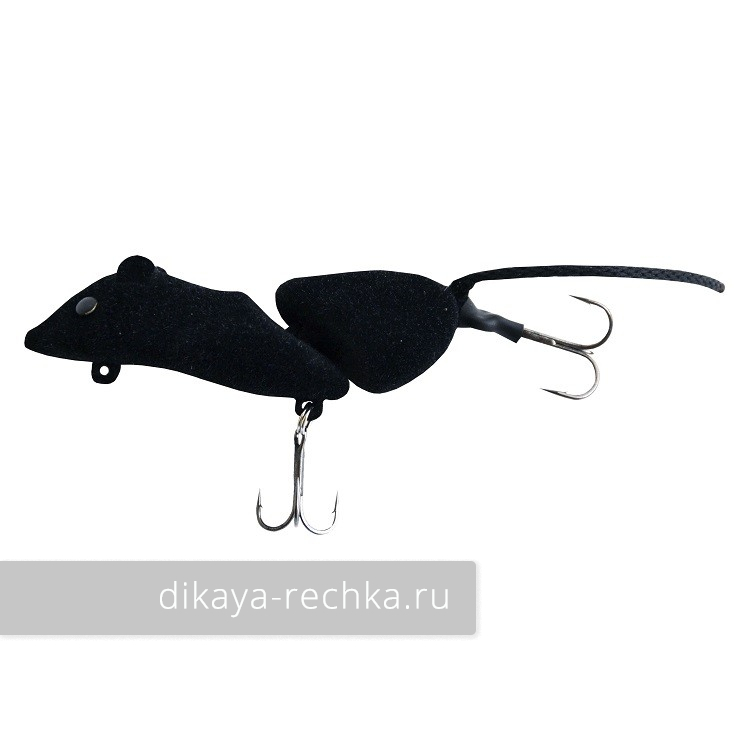 Плавающая имитация мыши, для большей реалистичности выполненная из двух шарнирно соединённых половин. Выполнена из пенополистирола на подгруженном каркасе из нержавеющей стали. Оклеена флоком, оснащена двумя острыми тройниками. Не теряет своих свойств при длительном применении.