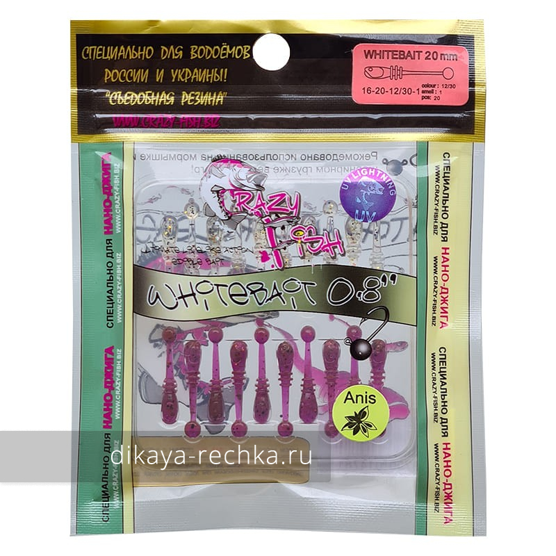 Whitebait - наноприманка для ловли белой рыбы, которая, как известно, часто соблазняется на мелкий силикон. Плотва, карась, елец и даже лещ - совсем не редкие гости в уловах микроджигеров. Еще один вариант применения - соревнования, где уловы зачастую состоят из мелкого окуня. Шарик на хвосте приманки активно работает при анимации удилищем.