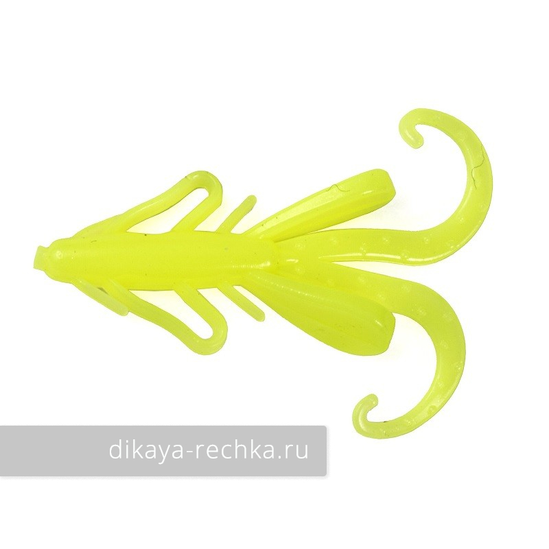 Силиконовая приманка, похожая на ракообразное с множеством длинных конечностей, которая отлично походит для микроджиговой ловли с активной анимацией. При подёргиваниях кончиком спиннинга приманка тычется в дно, шевеля ножками при рывках, как настоящий рачок, ищущий пропитание в донных отложениях. Стойкая белковая ароматика увеличивают привлекательность для хищника.