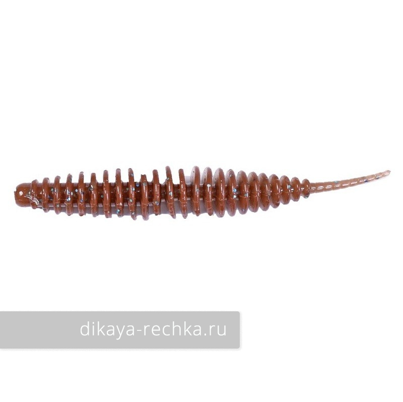 Шумовая ребристая приманка, форма которой очень популярна при ловле мелкой хищной рыбы в любых условиях и при любой солености воды. Узкий "хребет" придает ей подвижность, в то время, как объемные ребра создают у рыбы ощущение, что это плывет что-то довольно упитанное и стоящее того, чтобы попробовать его на вкус. Лучше всего проявляет себя на разнесенных оснастках и шарнирном соединении, дающем приманке свободную работу во всех плоскостях. Окунь часто берет его при падении на паузах в ступенчатой проводке. Мягкий подвижный силикон активно играет при проводке, оставляя в воде вкусовой след, а соль, включенная в его состав, побуждает хищника не сразу выплевывать червя при поклевке, создавая ощущение, что объект все-таки съедобен и давая больше времени на подсечку.