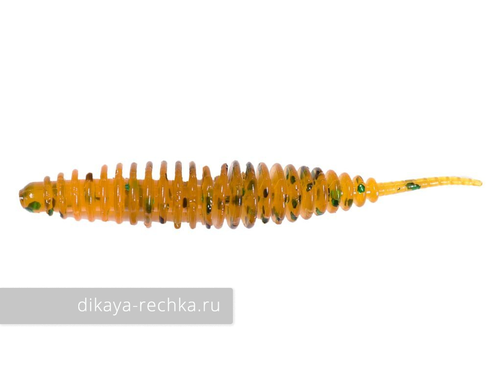Шумовая ребристая приманка, форма которой очень популярна при ловле мелкой хищной рыбы в любых условиях и при любой солености воды. Узкий "хребет" придает ей подвижность, в то время, как объемные ребра создают у рыбы ощущение, что это плывет что-то довольно упитанное и стоящее того, чтобы попробовать его на вкус. Лучше всего проявляет себя на разнесенных оснастках и шарнирном соединении, дающем приманке свободную работу во всех плоскостях. Окунь часто берет его при падении на паузах в ступенчатой проводке. Мягкий подвижный силикон активно играет при проводке, оставляя в воде вкусовой след, а соль, включенная в его состав, побуждает хищника не сразу выплевывать червя при поклевке, создавая ощущение, что объект все-таки съедобен и давая больше времени на подсечку.
