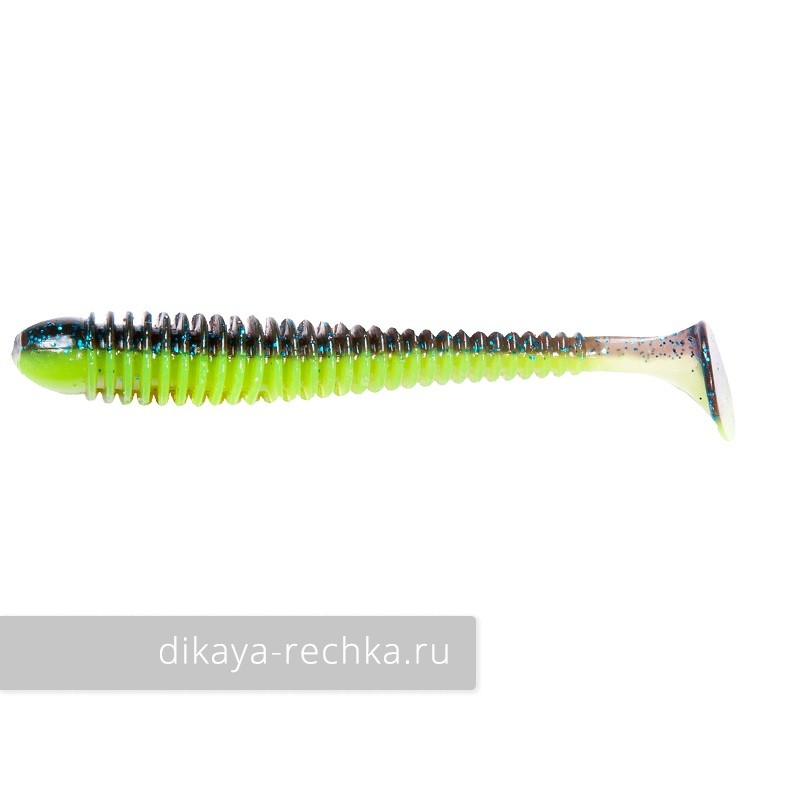 Некрупный шумовой виброхвост с круглым в сечении телом и подвижной маленькой пяткой на узком длинном хвосте, которая начинает работать уже на малой скорости проводки. Изготовленная из так называемого "съедобного силикона", она оставляет ароматический след в воде, что, наряду с вибрациями, привлекает хищника.