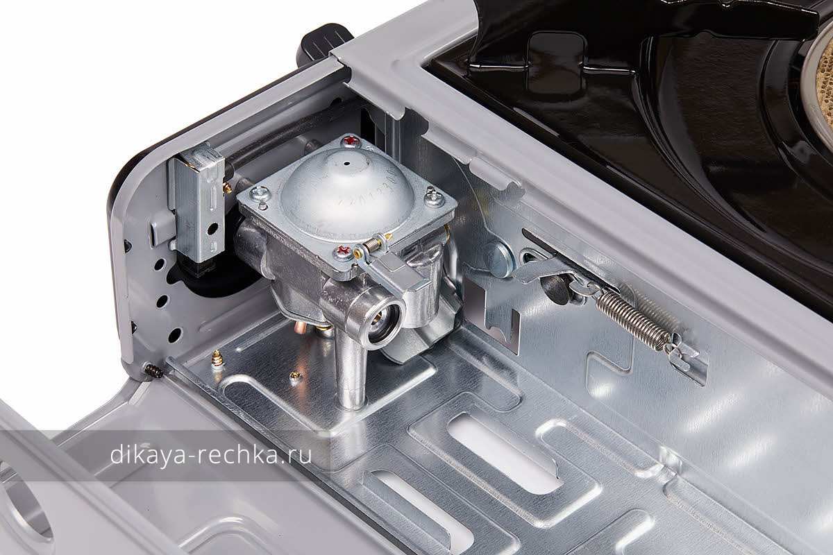 Портативная газовая плита с керамическим нагревательным элементом, который обеспечивает полное сгорание газа без выделения вредных продуктов горения, а также обеспечивает большее тепловыделение. Жёсткий пластиковый кейс защитит её от повреждений при транспортировке, а при использовании плиты по прямому назначению может применяться как подставка, либо в раскрытом состоянии как экран от ветра. Благодаря конструкции плиты вы не сможете установить баллон неправильно или при открытом вентиле, что исключает утечку газа. Предохранительный клапан сбросит избыточное давление при перегреве баллона и прекратит подачу топлива, что ещё больше повышает безопасность использования плитки. Работает от стандартных цанговых баллонов емкостью 230мл.