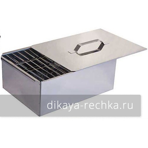Большая и вместительная двухъярусная коптильня со съёмными решётками, изготовленная из металла толщиной 1 мм. Материал достаточно толстый, чтобы коптильню не повело после неоднократного использования, но в то же время она получилась не слишком тяжёлой. Подойдет для копчения крупной рыбы или мяса, когда требуется большой объем. Съёмный поддон значительно облегчает чистку коптильни от жира и золы от истлевших опилок. Крышка имеет задвижную конструкцию, поэтому случайно не откроется, когда вы будете снимать коптильню с огня.
