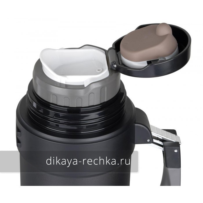 Термос современного дизайна с устойчивым к царапинам матовым покрытием и нескользящей резиновой ручкой.