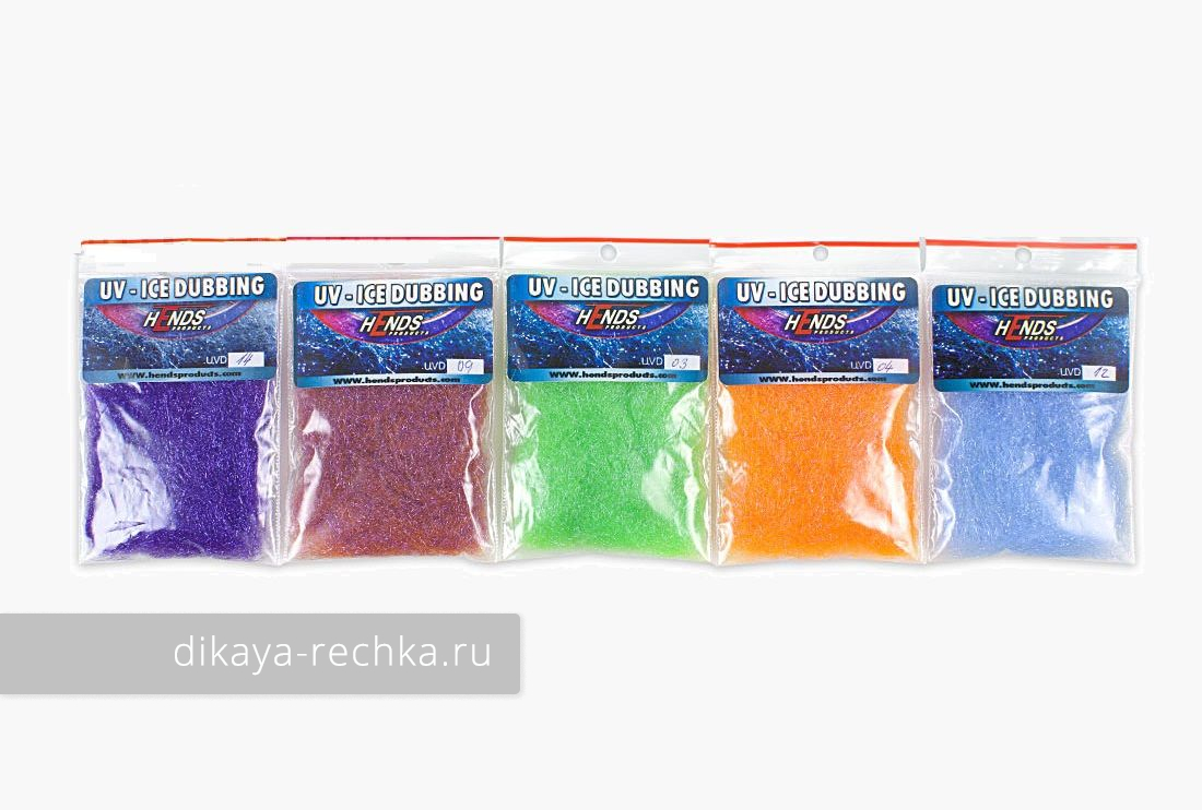 Даббинг HENDS Products UV-Ice Dubbing - великолепный и очень мягкий полупрозрачный искристый даббинговый материал, с которым очень приятно работать. Вдобавок он способен давать отблеск в ультрафиолетовых лучах, что, безусловно, провоцирует рыбу.