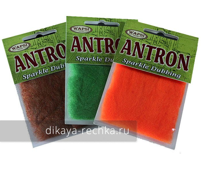 Даббинг WAPSI Antron Sparkle Dubbing - изготовлен на основе синтетического материала Антрон, который производит фирма DuPont. Антрон придает мушкам игривость и блеск, что, несомненно, может заинтересовать рыбу. Используется при изготовлении тел нимф, бокоплавов; хорошо подходит для сухих мушек за счет того, что почти не впитывает воду. Даббинг представлен в широкой цветовой гамме, хорошо сохраняет цвет мушек в процессе использования. Тонкое волокно делает его очень послушным в работе. Антроновый даббинг может использоваться как отдельно, так и в смеси с другими даббингами.