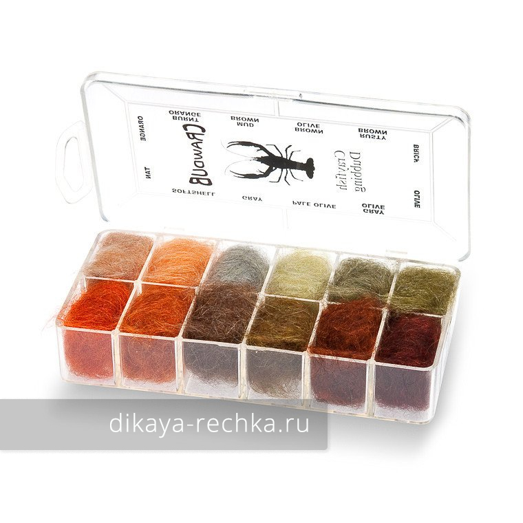 Набор из даббингов WAPSI Crawdub Dubbing из 12 различных цветов, упакованных в прозрачную коробочку с крышкой. Crawdub Dubbing - это даббинг из длинных жёстких волокон, пригодный для формирования объёмных тел различных "лохматых" мушек. Пожалуй, один из лучших даббингов для вязания мокрых мушек, имитирующих рачка-бокоплава (гаммаруса), известного в Сибири как бормаш. Длинный ворс даббинга реалистично играет в воде, имитируя движение ножек рачка. Этот даббинг рекомендуется вязать в даббинговой петле.