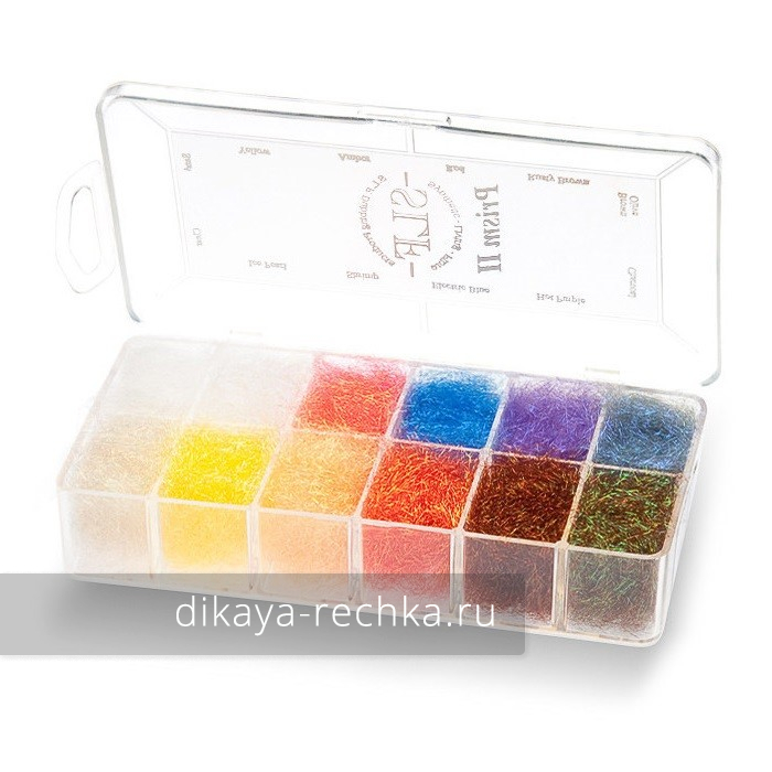 Волокна этого даббинга специально созданы из многослойного синтетического материала, который отражает свет как призма. Довольно мягкий даббинг для своего типа. Может применяться как добавка в любые натуральные даббинговые смеси, чтобы придать им особый блеск. В чистом виде идеально подходит для вязания стримеров, лососевых, омулевых, морских и форелевых мушек.