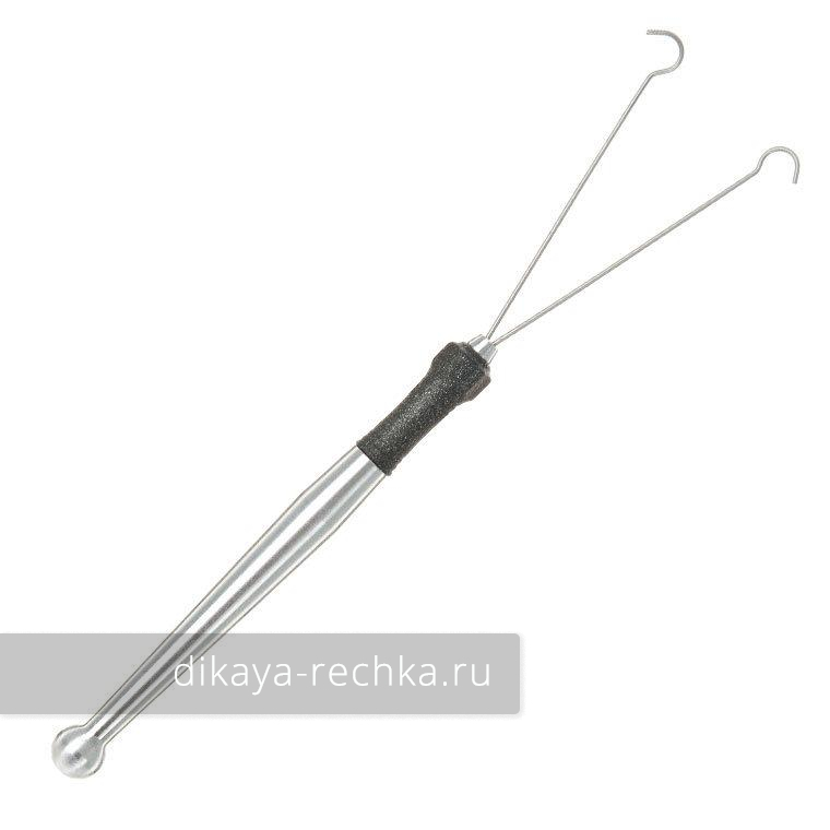 Очень качественно изготовленный скручиватель даббинговой петли от итальянского производителя рыболовных аксессуаров и муховязных принадлежностей Stonfo. Он снабжен изящной точёной ручкой из алюминия с гранёным упором для пальцев из мягкого резиноподобного материала. Усики скручивателя цепляются за петлю, разводя её в стороны, в петлю закладывается даббинг, а затем вы немного оттягиваете скручиватель вниз, чтобы усики приблизились друг к другу, при этом вращая его пальцами. Помимо того, что им очень удобно пользоваться, он ещё и очень красиво выглядит, что, впрочем, характерно для всех инструментов от этой компании.
