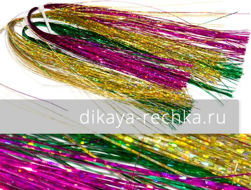 FLY-FISHING Flashabou 1/69" – блестящие синтетические волокна, используются как добавка в крыло стримеров и разнообразных лососевых мушек. На более мелких крючках их также используют для формирования тел мушек, их сегментации, хвостиков.