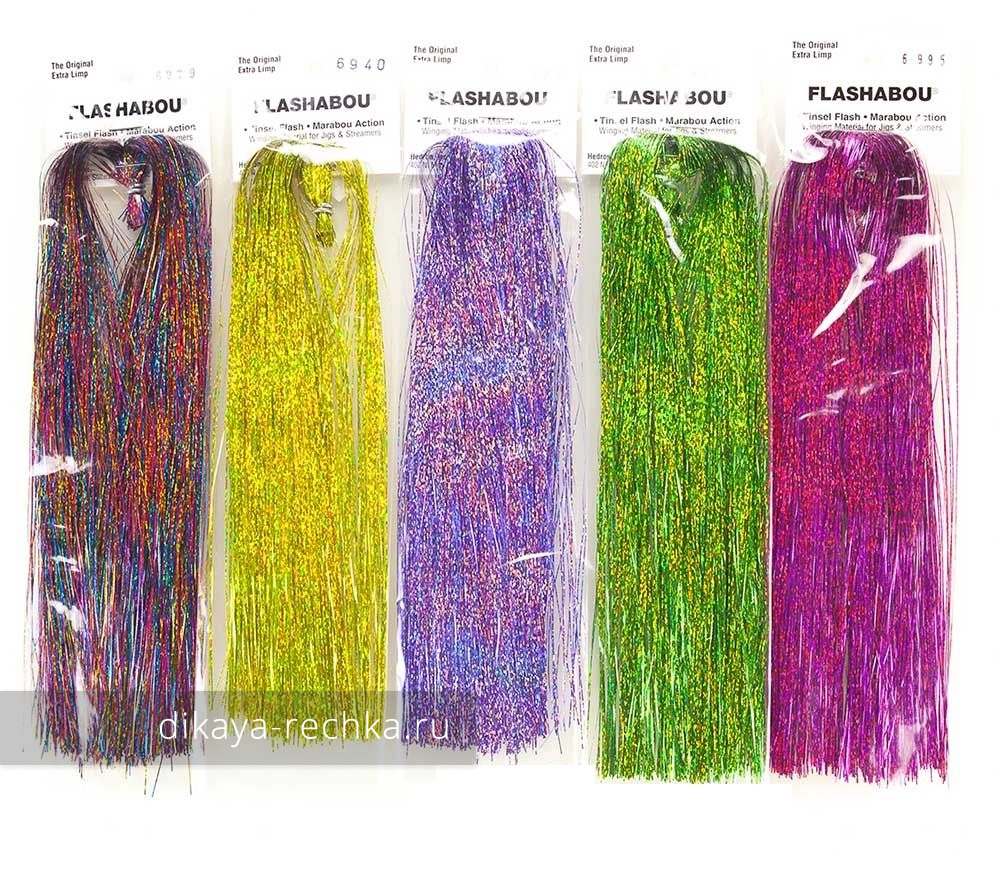 Блестящий голографический люрекс плоской формы, используемый как привлекающая внимание рыбы добавка в крылья различных лососевых мушек и стримеров. В мушках меньшего размера используется для формирования блестящего тела, сегментации, изготовления хвостиков. Такой материал пульсирует, как перья марабу, и при этом блестит. Отсюда и название - flash (вспышка, блеск) + marabou (марабу).