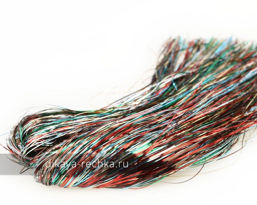 Sybai Tinsel Blend Hair – смесь блестящих синтетических волокон, в зависимости от цвета волокна комбинируются по разному, это перламутровые, голографические и разноцветные волокна. Подходит для создания почти всех стримеров. Материал очень мягкий и подвижный, что придаст стримеру живую игру, которая не насторожит рыбу. Также Tinsel Blend Hair можно использовать для формирования крыльев, хвостиков, тел и ребер.