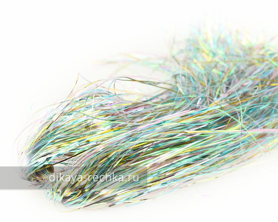 Sybai Tinsel Blend Hair – смесь блестящих синтетических волокон, в зависимости от цвета волокна комбинируются по разному, это перламутровые, голографические и разноцветные волокна. Подходит для создания почти всех стримеров. Материал очень мягкий и подвижный, что придаст стримеру живую игру, которая не насторожит рыбу. Также Tinsel Blend Hair можно использовать для формирования крыльев, хвостиков, тел и ребер.