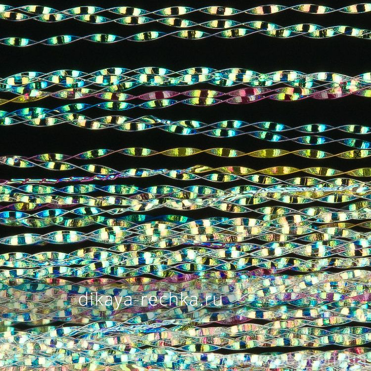 FLY-FISHING  Crystal Flash - крученое тонкое синтетическое волокно, прекрасный материал  для формирования крыльев у лососевых мушек, создания стримеров. При вязании нимф он хорошо подойдет для риббинга (обмотки) и используется в качестве привлекающего аттрактора.
