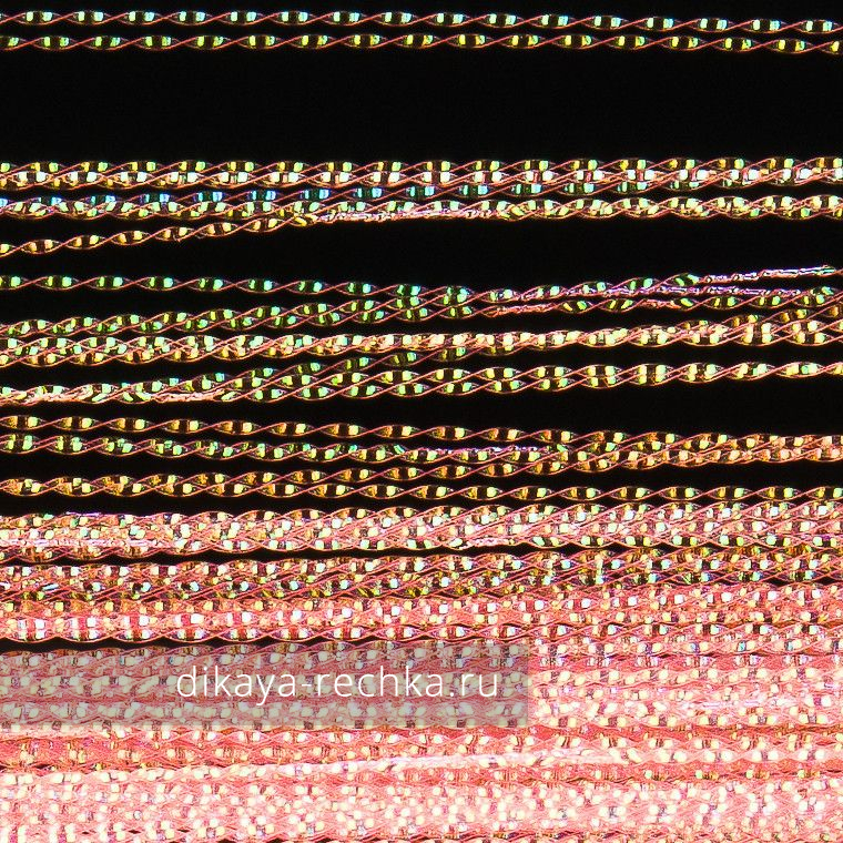 FLY-FISHING Crystal Flash - крученое тонкое синтетическое волокно, прекрасный материал для формирования крыльев у лососевых мушек, создания стримеров. При вязании нимф он хорошо подойдет для риббинга (обмотки) и используется в качестве привлекающего аттрактора.