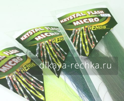 HENDS products Krystal Flash Micro – очень тонкое крученое синтетическое волокно с привлекательным блеском и обладает водоотталкивающими свойствами. Тонкая структура волокна позволит вам связать миниатюрные аккуратные мушки, либо сформировать отдельные ее элементы. Цветовая гамма поможет подобрать нужный оттенок для определенных условий. Блеск дополнительно заинтересует объект ловли и спровоцирует на поклевку. Материал прост в работе, он понравится как профессиональным, так и начинающим муховязам.