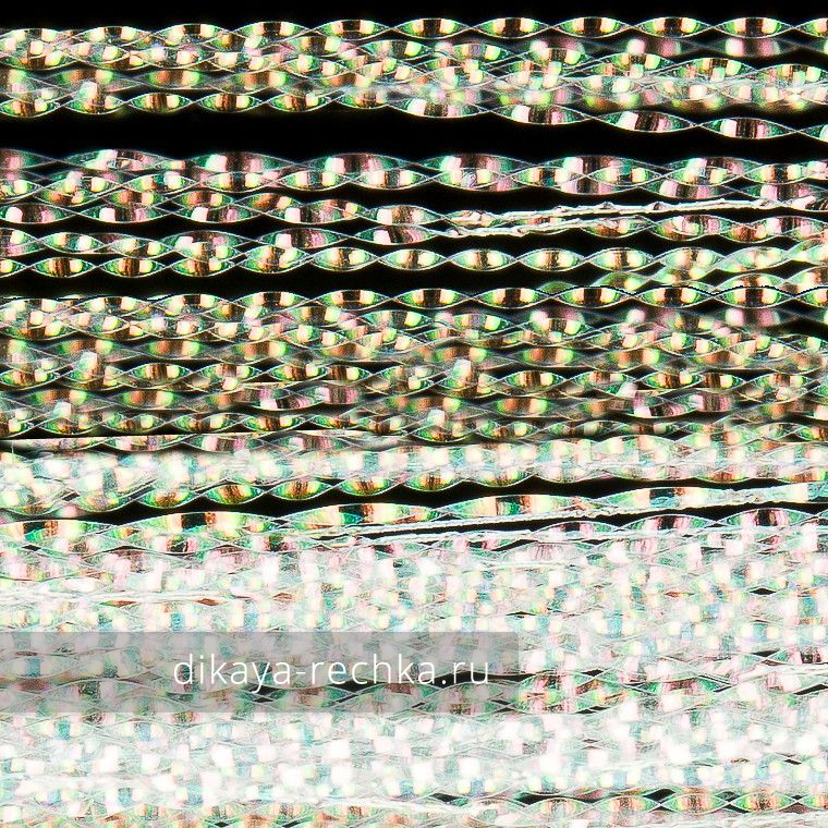 Люрекс крученый Kosadaka – синтетический крученый люрекс, который подойдет для создания стримеров, формирования крыльев у мушек, хвостиков, ножек и других целей. Материал легкий, подвижный в воде, и очень прочный, что хорошо сказывается на долговечности мушки.